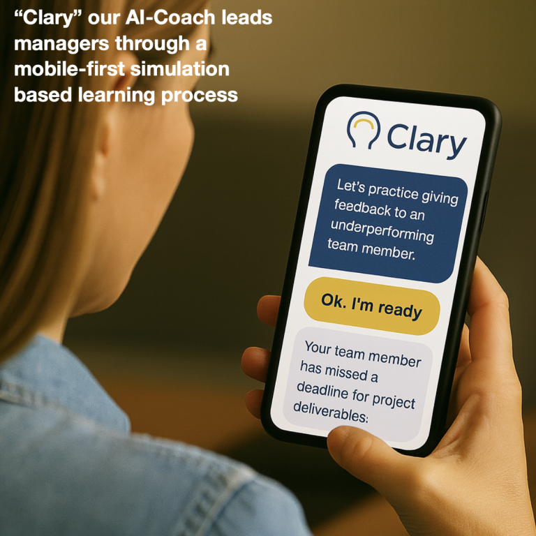 Confidence grows through practice, not just theory. Claryence’s AI-powered mobile-first simulations let managers rehearse critical conversations.